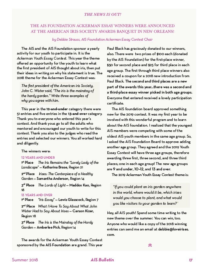 1st Place “Iris Essay” — Lewis Glasscock, Region 7