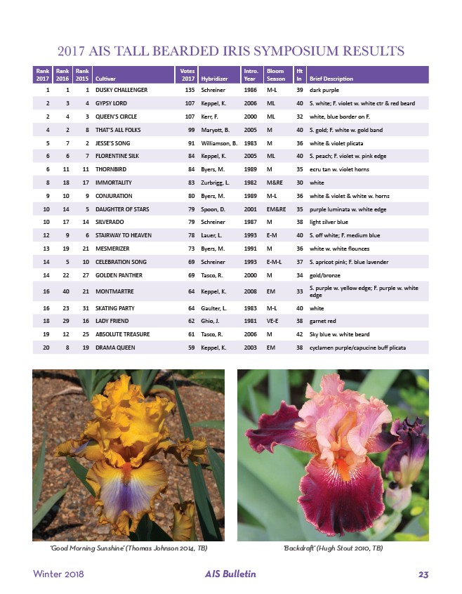 2017 AIS TALL BEARDED IRIS SYMPOSIUM RESULTS