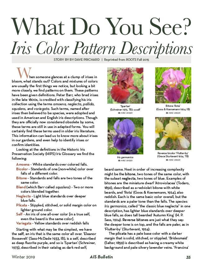 blue falls, as does tall bearded ‘Autumn King’ (H. P.