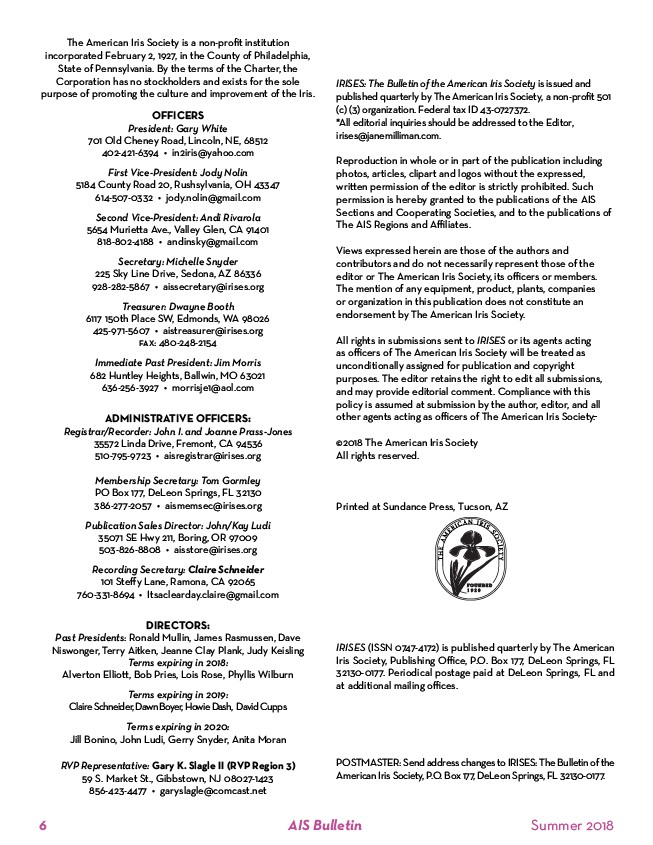 Iris Society, Publishing Office, P.O. Box 177, DeLeon Springs, FL