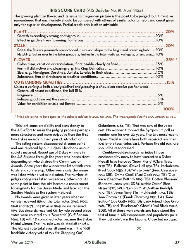 IRIS SCORE CARD (AIS Bulletin No. 15, April 1924)